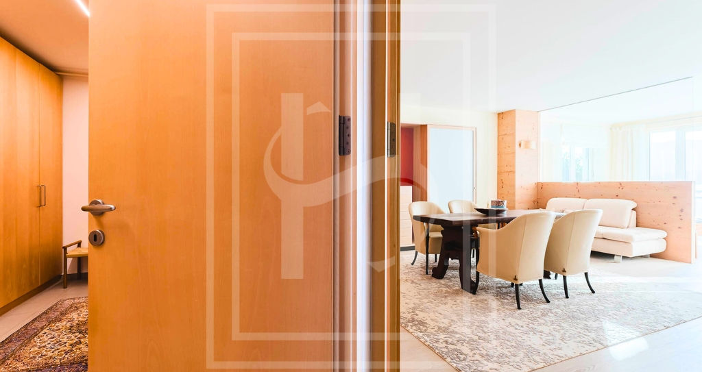 Hochwertige Tischlerarbeiten, raumhohe Türen und edle Lärchendielenböden verleihen dem gesamten Innenbereich eine unvergleichliche Eleganz.